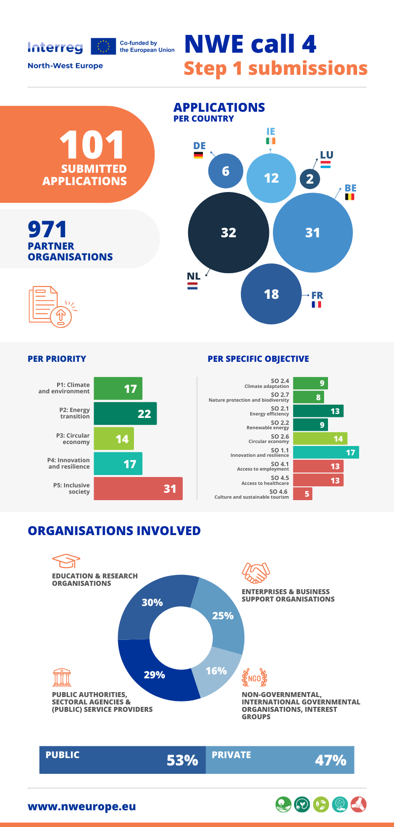 The fourth Interreg NWE call for projects in the 2021-2027 period received 101 proposals after its closure on Thursday, 21 March 2024, at 12:00 noon (CET).